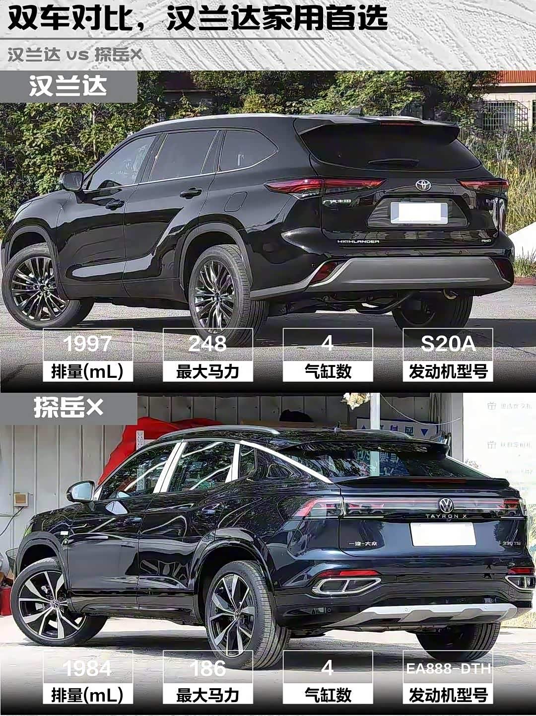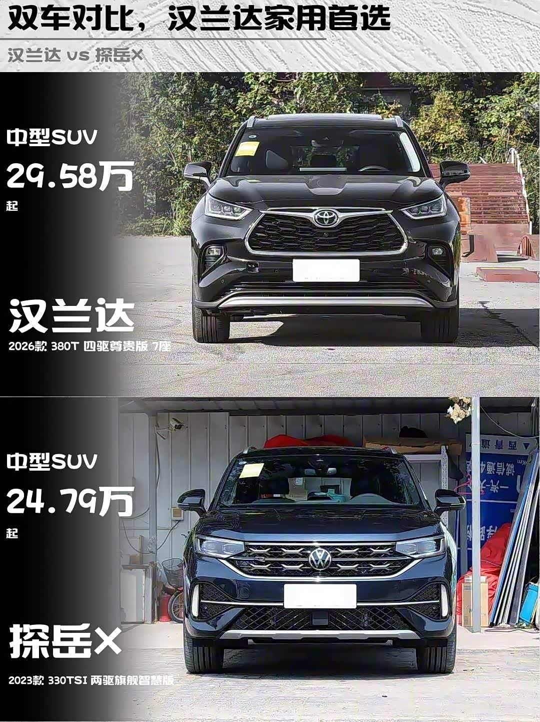 双车对比,汉兰达家用首选