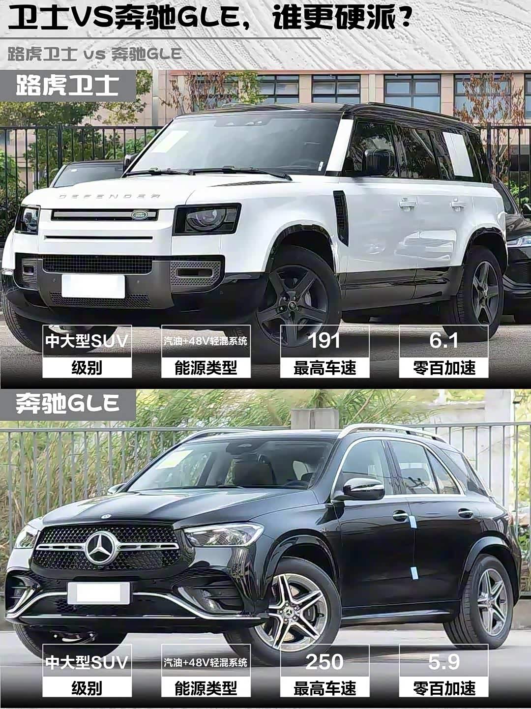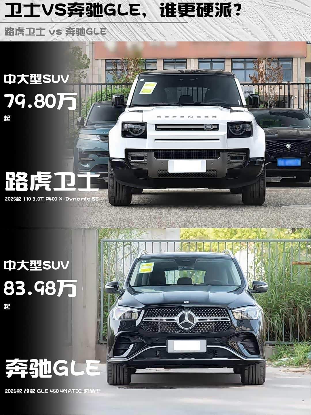 最近后台好多人在问路虎卫士和 奔驰GLE(参数|询价)怎么选?作为深度体验过这两台车的玩家,今天就从硬核玩家视角给大家掰开揉碎分析一波!🔥