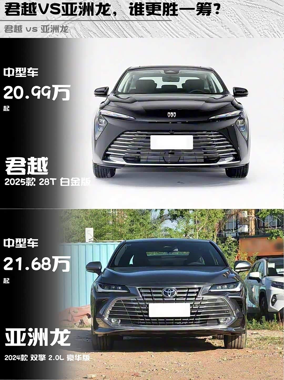 最近试驾了2025款别克君越28T白金版和2024款 丰田亚洲龙(参数|询价)双擎2.0L豪华版,两款都是20万级中型车里的热门选手,但性格差异巨大!分享下我的真实体验👇