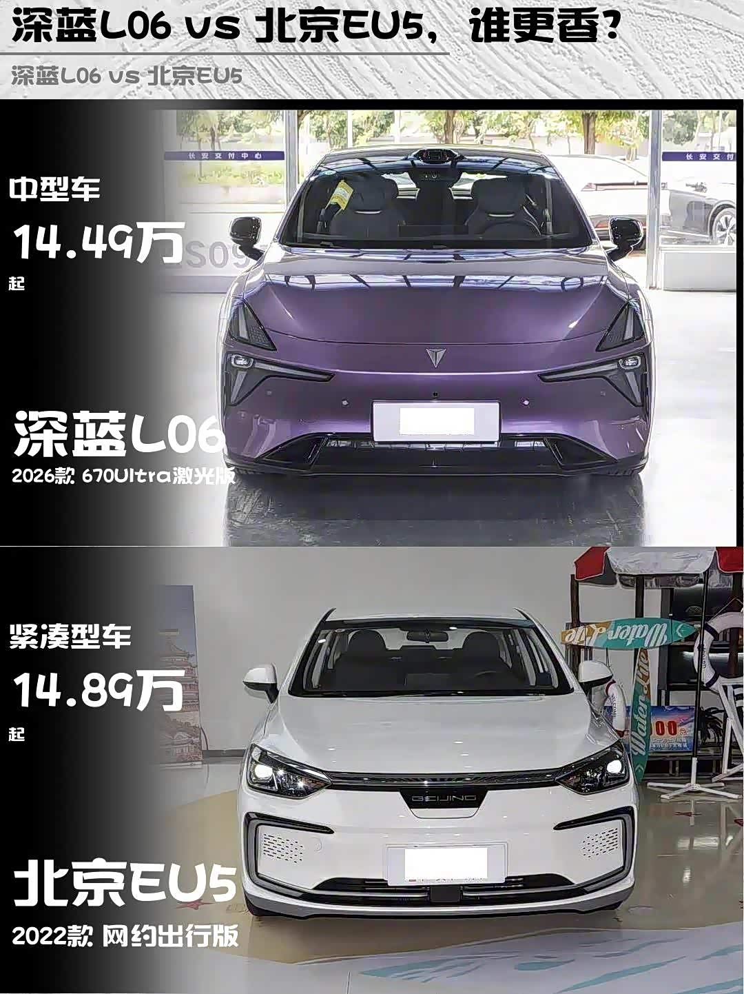 最近在选纯电车,纠结 深蓝L06(参数|询价)和北京EU5?作为深度体验过两款车的“老司机”,直接上干货对比!🚗💨