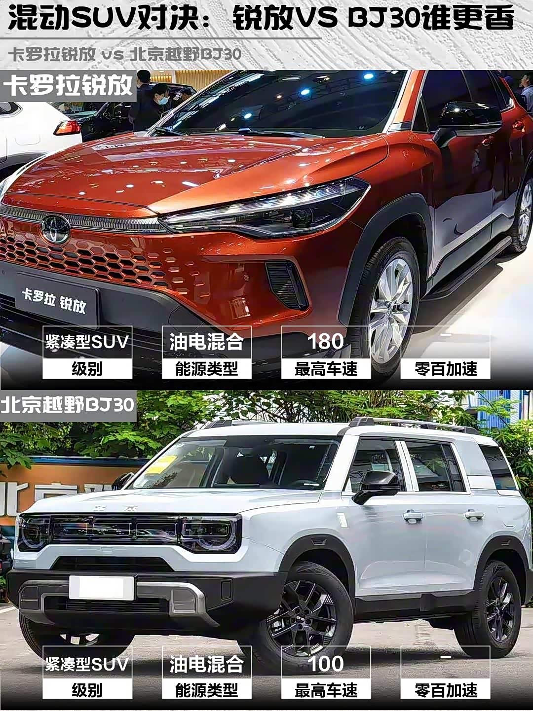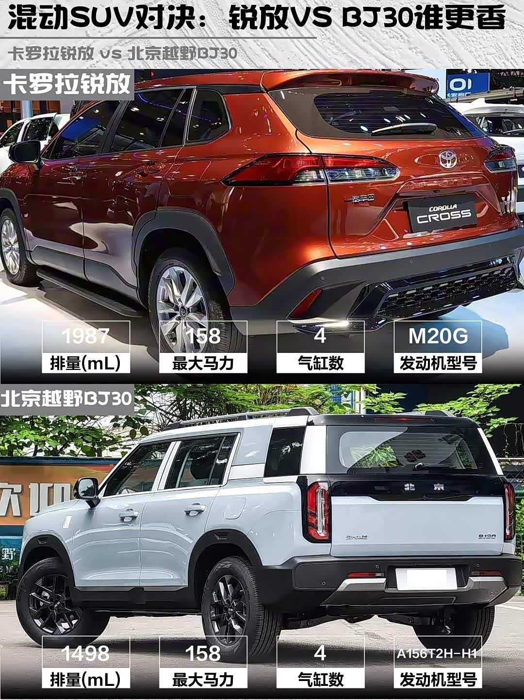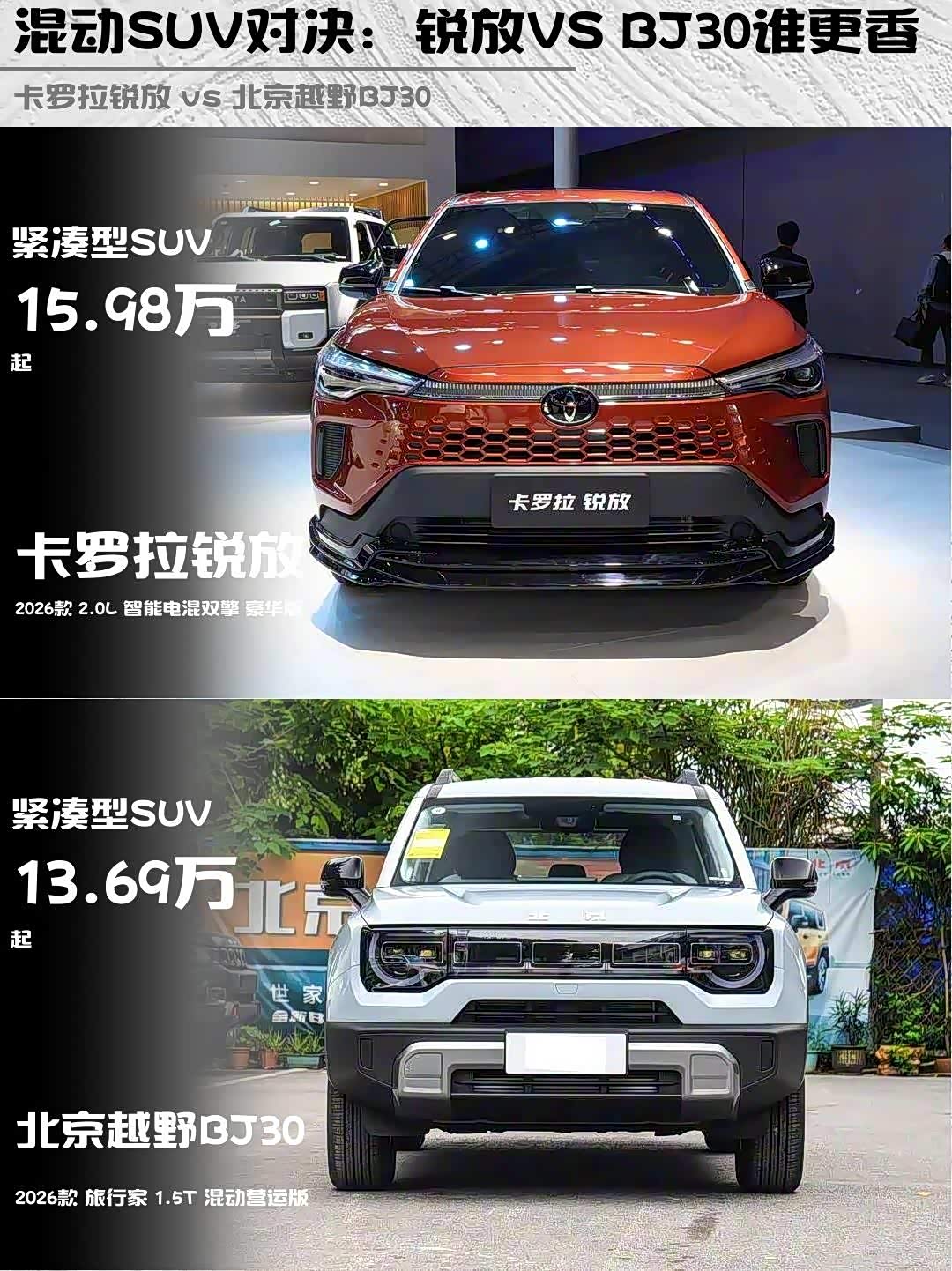 最近在纠结15万级混动SUV选哪款?今天给大家深度对比2026款卡罗拉锐放2.0L智能电混双擎豪华版和 北京越野BJ30(参数|询价)旅行家1.5T混动营运版,看完这篇你就懂了!🚗💨