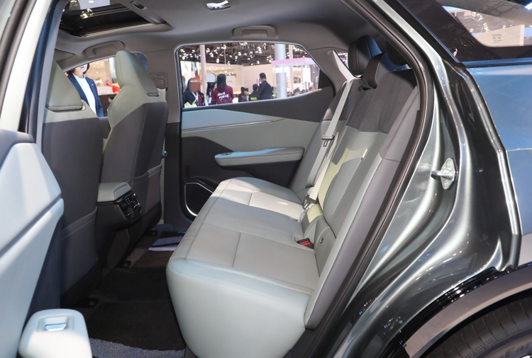 首先来看看丰田BZ3的尺寸。它的长宽高是4725mmx1835mmx1480mm,可能光从外表看表现不亮眼,但要知道丰田BZ3的轴距为2880mm,这可是超过了很多B级家轿的轴距,比自家的凯美瑞轴距还要长,所以在后排空间方面,不夸张的说跷二郎腿都没问题,空间表现令人满意。
