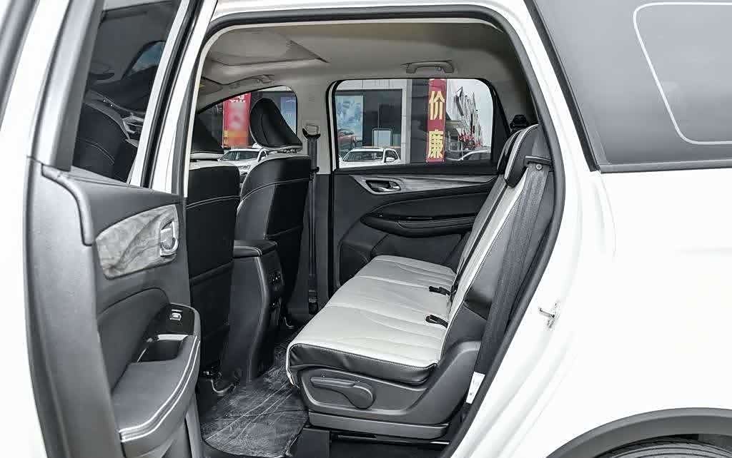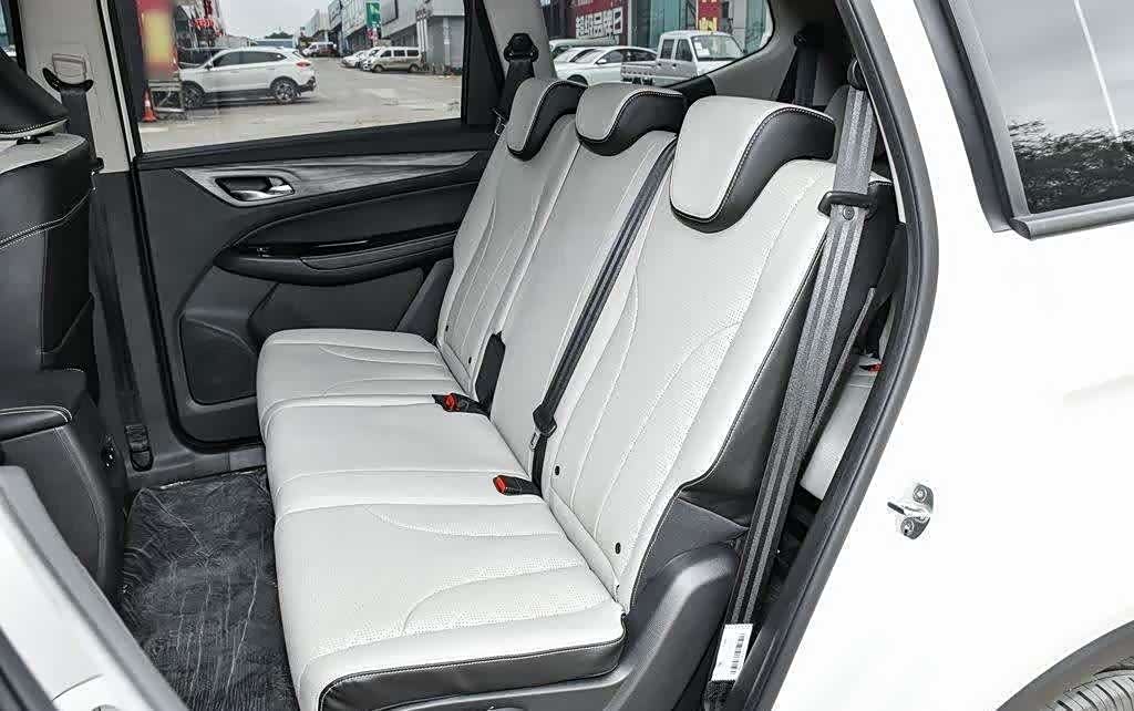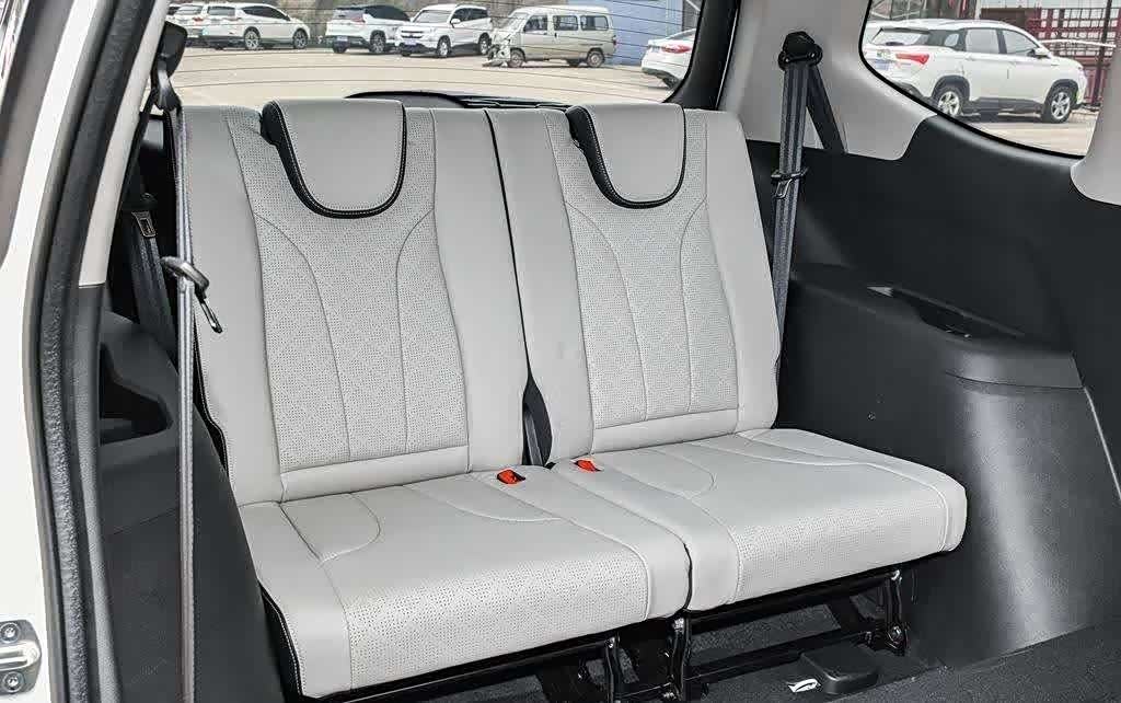 座椅采用仿皮材质,以双色拼接设计呈现。坐垫和靠背都经过打孔处理,视觉效果更具档次感。座椅内部填充物柔软,坐感舒适。相对而言,头枕的质地略显硬朗。作为一辆7座车型,试驾车型采用2+3+2的座椅配置,而手动挡车型则是2+2+3的布局。第二排座椅提供三个头枕,未配备中央扶手,但样式与前排座椅保持一致。第三排座椅为两个独立座椅,靠背和坐垫宽大,舒适度不打折扣。