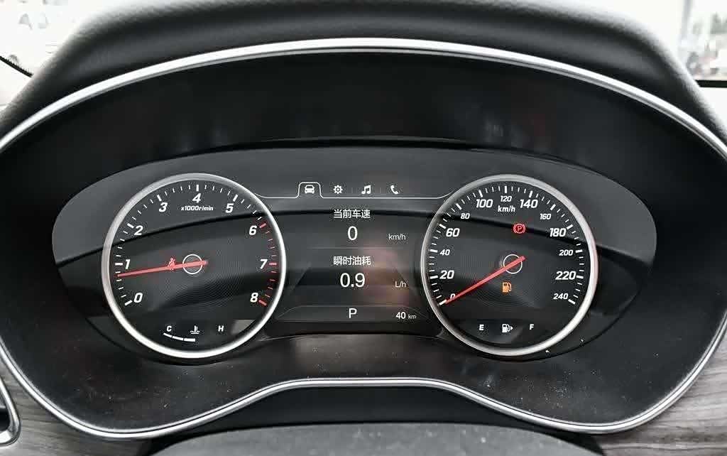 方向盘采用塑料材质,独特三幅平底式设计,底部采用镂空工艺,点缀以银色饰条,视觉上不显单调。配备的多功能键盘,结合拨杆和按键两种操作形式,使用便捷,布局合理,易于上手。仪表盘设计虽传统,但双指针盘外侧有饰条装饰,增添时尚感。两个指针盘之间镶嵌一块7英寸液晶屏,展示丰富的车况信息。而水温表和油量表则采用先进的电子屏显示技术,展现信息一目了然。