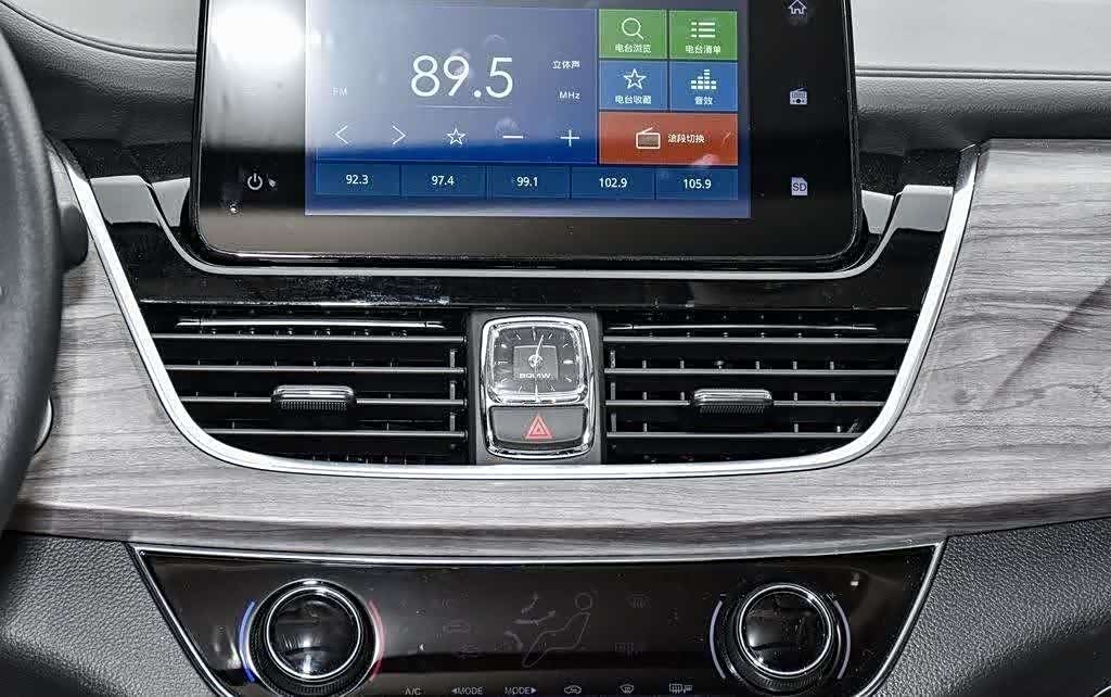 半悬浮式中控屏设计时尚,符合现代审美,屏幕尺寸达8英寸。虽然两侧配备常用的虚拟按键,但UI界面设计略显不足,分辨率有待提高,略显廉价感。车机系统功能相对简单,仅支持蓝牙电话和原厂互联。然而,下方的空调出风口中央镶嵌一块精致的石英表,提升了整体档次感。空调控制面板的质感上乘,给人留下深刻印象。