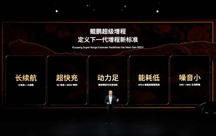 小鹏在2025年11月发布了超级增程系统,提出了自己的下一代增程标准,包括长续航、超快充、动力足、能耗低和噪音小。