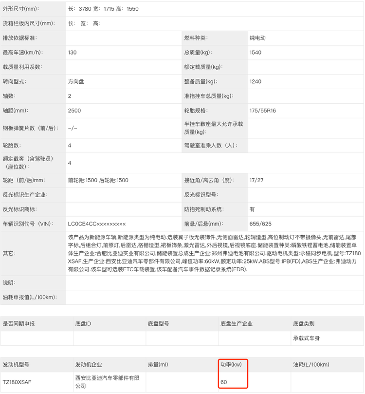 但是,但是,朋友们,海鸥顶配续航400公里,虽然是小车里面最长的了,但还可以更长,所以有一定概率会上500公里版本,动力是变强了,工信部申报信息,换60kW电机。