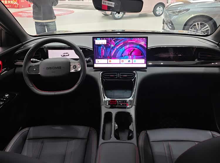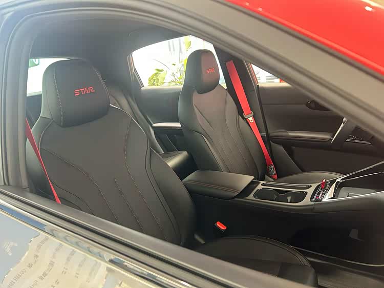 拉开车门,内饰是统一的“曜石黑”风格,但红色元素无处不在,瞬间点燃驾驶欲望。你能看到方向盘、座椅、门板等处的红色缝线,还有红色的空调出风口装饰件。坐进驾驶位,运动方向盘握感扎实,抬头是专属刺绣的头枕,拉上那根醒目的红色运动安全带,仪式感满分。