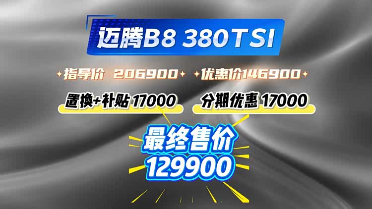最关键的价格部分,堪称“层层优惠叠满”。官方指导价206900元的迈腾B8380TSI,基础优惠就达6万元,直降后价格146900元。想要触及129900元的低价,有两种路径可选:一是旧车置换,本品置换补贴7000元、非本品5000元,叠加1.3万元的省补后可减1.7万元(去除相关税费);二是选择厂家金融分期,同样能享受1.7万元补贴。如果既置换又分期,价格直接下探到112900元,堪称“薅羊毛天花板”。