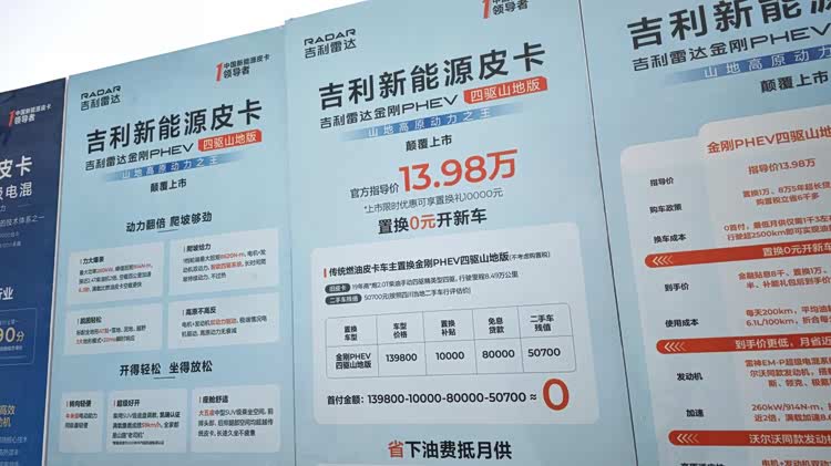 吉利新能源皮卡连续三年新能源皮卡市占率第一,中国全品牌皮卡位次第五,荣登“中国新能源皮卡销量冠军”。在皮卡产品日益走向细分化和新能源化的大趋势下,这次它们又提供了一个兼顾强悍工具属性与现代驾乘体验的高效解决方案。经过场地内多科目的综合体验,雷达金刚PHEV山地版清晰地展现了其产品逻辑:它并非简单地在燃油皮卡上叠加电机,而是通过雷神EM-P超级电混系统,对山地高原用户的核心诉求进行了系统性回应。强劲且响应迅捷的动力、稳健可靠的承载与车身刚性、应对复杂地形的智能四驱与操控便利性,以及针对高原环境优化的动力保持能力和超长续航,共同构成了其“山地高原动力之王”的价值内涵。