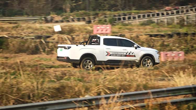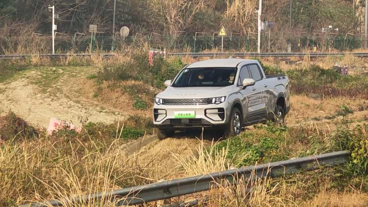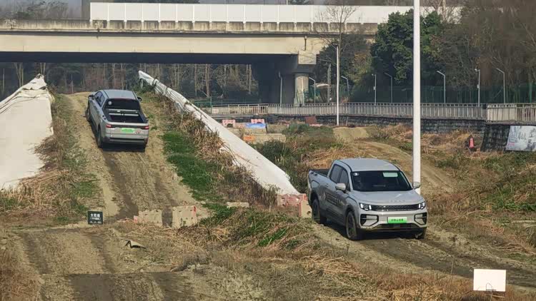 车辆提供多种地形模式,包括专为恶劣路况设计的雪地、泥地、越野模式。在场地狭窄的连续S弯中,其转向系统表现出色。得益于牛米级电动助力,方向盘手感比传统燃油皮卡轻便约30%,即便是模拟重载状态,转向也毫不费力。同时,6.5米的最小转弯半径,在山区窄路掉头或弯道通行时显得尤为实用,减少了反复揉轮的次数与潜在风险。