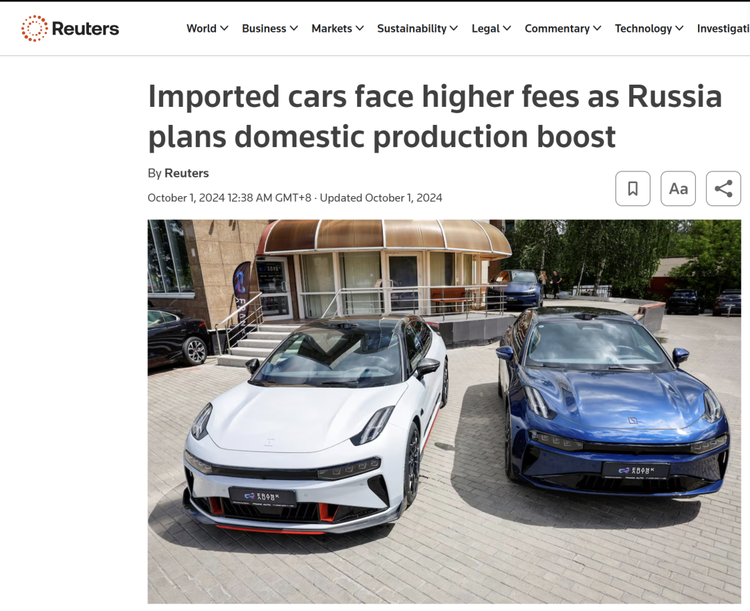 2024年10月,俄罗斯将进口车报废税大幅上调70-85%,令进口车企及经销商的利润空间大减;