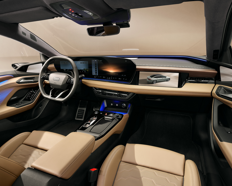 奥迪A6L e-tron展车现已到店,外观彻底摈弃了燃油版奥迪A6L的风格,而是高度沿用了奥迪Q6L的设计语言,整车变得更加年轻、科技。新车诞生自PPE纯电平台,车身尺寸是5073/1942/1522mm,轴距为3076mm,车内配备有弧形双联屏和副驾娱乐屏,还可选装电子后视镜,配备有AR-HUD、全景天幕等。