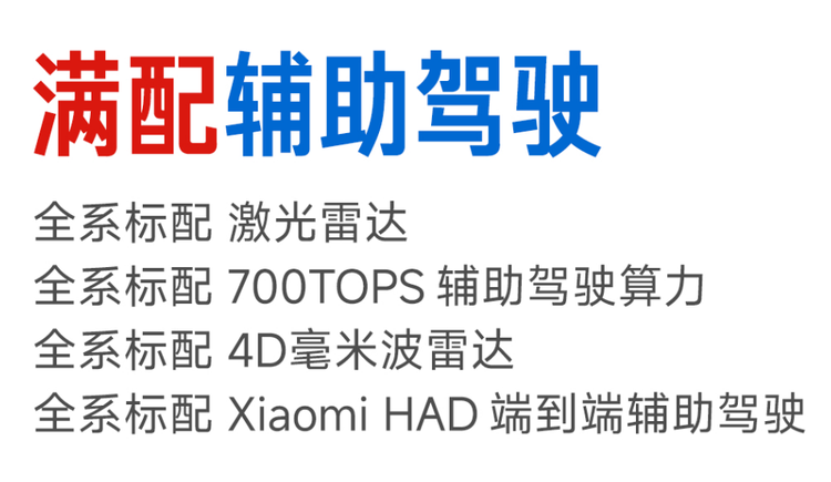 智驾方面,全新小米SU7标配激光雷达,入门版算力从84TOPS提升至700TOPS,支持Xiaomi HAD端到端高阶智驾。动力上升级搭载V6s Plus电机,最大马力320匹、690匹,此前很多人吐槽小米SU7入门版搭载的还是400V平台,而全新小米SU7入门版升级为752V高压平台,高配版本更是配备了897V高压平台。