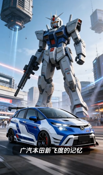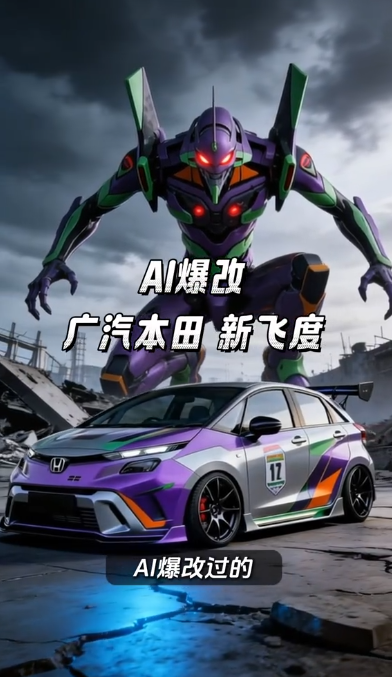 而这次AIGC共创,恰恰就是对着这份“家底”精准发力。活动一上线,网友的创作热情直接爆炸。有人给飞度装上气动避震,玩起低趴风格,配上大抛边轮毂和激光大灯,晚上一亮相简直帅炸;有人走机甲战斗风,黑化大灯、贯穿尾灯安排上,买菜车秒变未来战车;还有人致敬经典,复刻日规RS造型,细节到位情怀拉满。这些AI生成的图片和视频在社交媒体上疯传,原本的外观争议,反而成了最好的话题起点。
