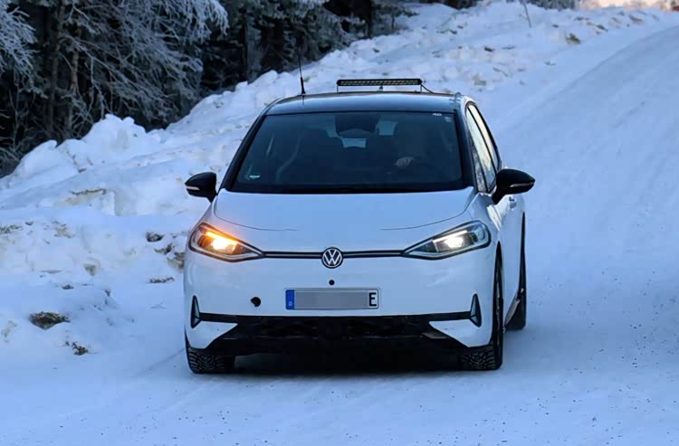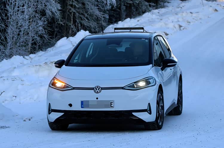 大众纯电车iD.3诞生于2019年,并在2023年3月进行了一次更新,而谍照捕捉到的这款路试车是二次更新的版本。这次伪装做得非常巧妙,如果不仔细看还以为是现款iD.3在雪地中行驶,前大灯部分其实是贴纸,中央被挖空露出了后面的光源部分。