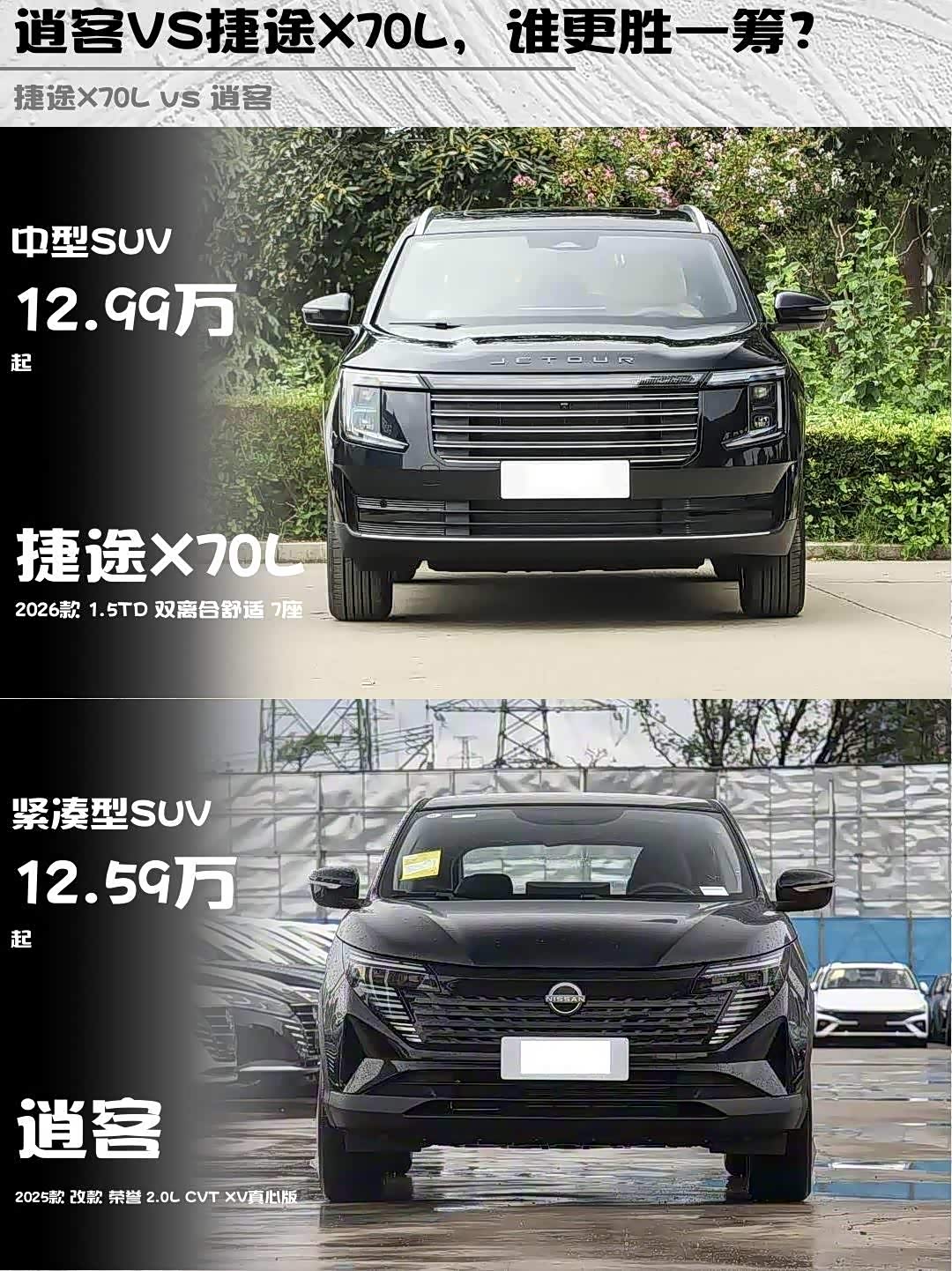 车家号·0浏览·2026-01-10 08:25 · 北京最近在选家用SUV的朋友看过来!🚗 今天深度对比两款热门车型—— 捷途X70L(参数|询价) 2026款1.5TD双离合舒适7座 vs 逍客2025款改款荣誉2.0L CVT XV真心版,实测干货直接上!👇