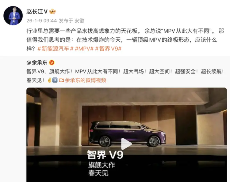 车家号·0浏览·2026-01-10 13:52 · 广东今日,前比亚迪腾势总经理赵长江在社交媒体转发了余承东关于智界 V9 的信息,正式官宣加入智界汽车。据此前报道,赵长江将担任智界汽车营销总经理一职。