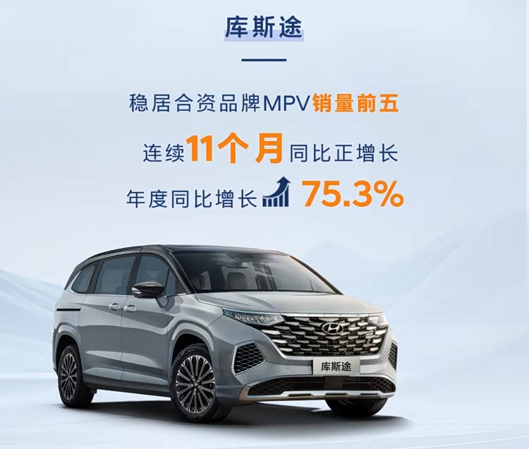 销量目标的达成,离不开核心车型在细分市场的强势表现。MPV领域, 库斯途(参数|询价)凭借精准的产品定位与可靠品质,稳居国内合资MPV销量前五,成为家庭用户与商务场景的优选车型;中型车市场,索纳塔与途胜组成的“双子星”展现强劲增长势能,下半年销量同比增幅高达66%,以综合产品力巩固了品牌在主流合资市场的地位。