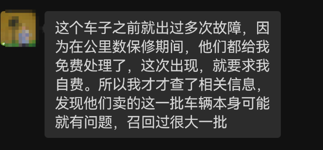 值得注意的是,文先生提到,其车辆在使用期间已多次出现质量问题,并非首次发生故障。首次出现的是电池显示故障;第二次则是在平路行驶过程中底盘部件脱落;后续还相继出现了刹车抱死系统、ESP系统等故障,此次故障检测后,又检出电机、减速器等多项关键部件故障。