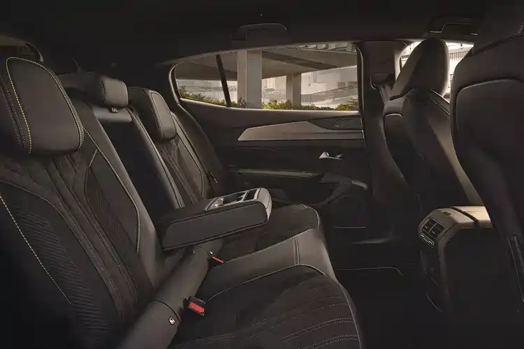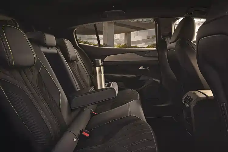 尾部采用了与前脸相似的狮爪造型分体式尾灯,中间原本的厂牌标志被可以发光的“Peugeot”字样取代,点亮之后也形成了一种贯穿式尾灯设计的即视感。尾部的牌照区域被设计在了后备箱门上,下方则为集成了出气口的后保险杠,后保险杠的设计有些沉闷但安全感十足。