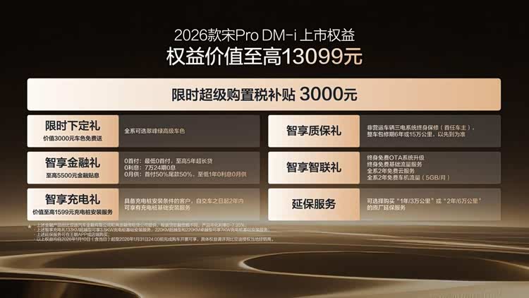 宋Pro已赢得超过百万家庭的信赖。此次2026款宋Pro DM-i以限时9.98-12.78万元的诚意价格,为消费者提供了更具价值的选择。它不仅是对产品线的有力补充,更是基于用户真实反馈的诚意升级。以更长的纯电续航、更智能便捷的科技配置、更体贴入微的舒适享受和更周全可靠的安全防护,生动诠释了一款优秀家用SUV应有的价值,陪伴更多家庭悦享每一段美好旅程。