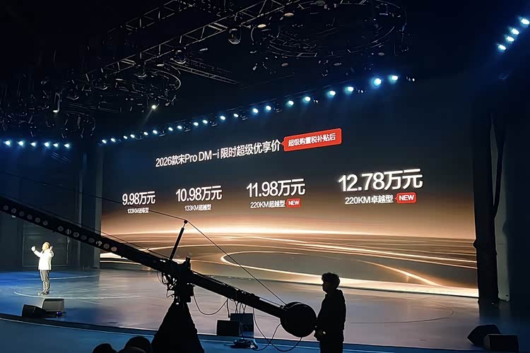 1月10日,比亚迪2026款宋Pro DM-i 220km长续航版本正式上市,新车共推出2款细分车型,限时超级优享价9.98万-12.78万元。新车以“大电池长续航”为核心卖点,在纯电续航、智能配置、舒适体验与安全性能等方面实现全面进阶,致力于为家庭用户提供“纯电自由”的高品质出行体验。