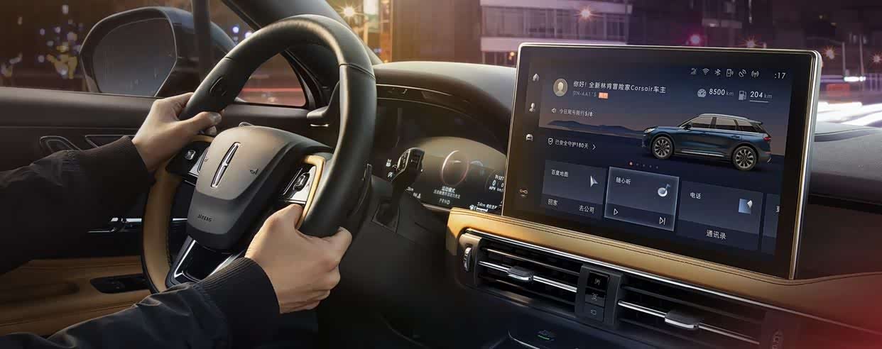 另外,林肯全新车型包括冒险家在继承林肯品牌奢华的内饰用料外,用更多科技智能化配置,让林肯冒险家屹立于豪华品牌同级SUV车型之巅!中控处一台12.8寸超大高清触控大屏,其内是林肯旗下SYNC+智行互联智能系统,在竞品常规的车机系统上提升至“智能导航”、“自然语音交互”、“丰富的车载娱乐与服务生态”和“云端智能互联互通”四大功能,把常用车机系统的功能给升华至更为智能化!