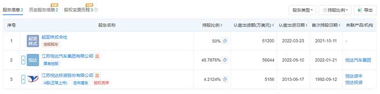 至此,悦达起亚的持股比例变为起亚株式会社、江苏悦达汽车集团有限公司和江苏悦达投资股份有限公司各持有50%、45.8%、4.2%。不过,悦达集团和悦达投资为同一实际控制人,合计持有悦达起亚50%股份,与韩方对等。一直到现在,悦达起亚的股比依旧如此。