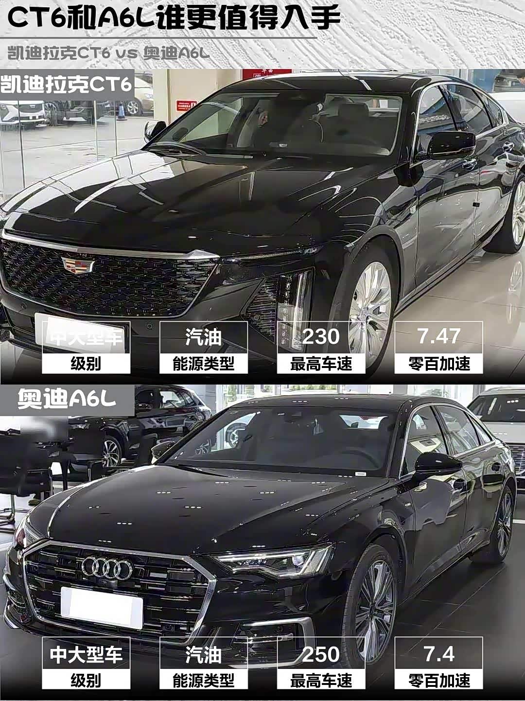 CT6的2.0T+10AT组合(237马力)起步稍肉但中后段爆发惊艳,电磁悬架过减速带像踩棉花!A6L的2.0T+DCT(245马力)低速偶有顿挫,但7.4s破百确实快一丢丢。实测油耗CT6市区11L vs A6L 9L,美系车你懂的🤷