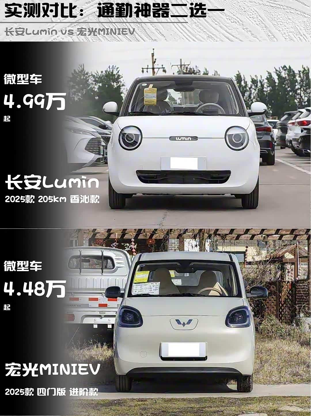最近想入手一台微型电动车代步,在长安Lumin 2025款 205km香沁款和 宏光MINIEV(参数|询价) 2025款四门版进阶款之间纠结了好久,今天把深度对比体验分享给大家!💡