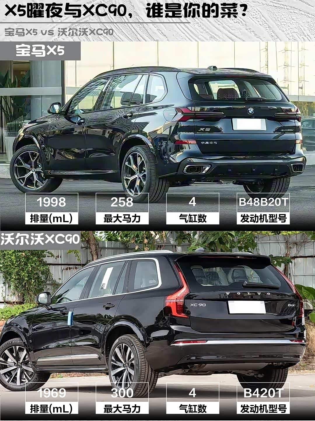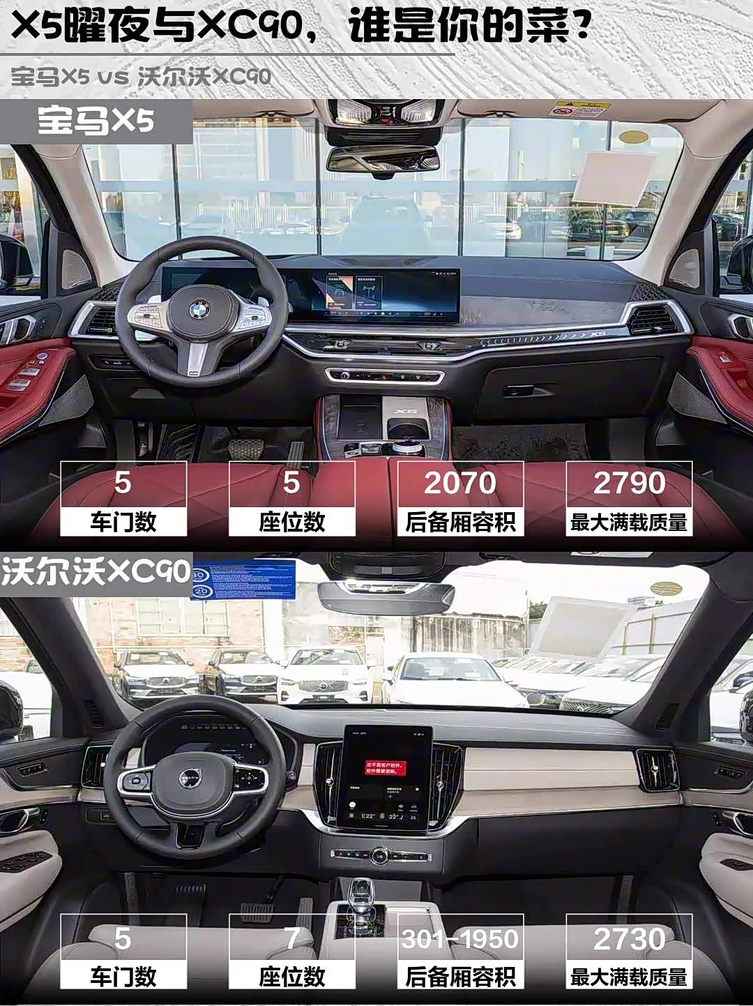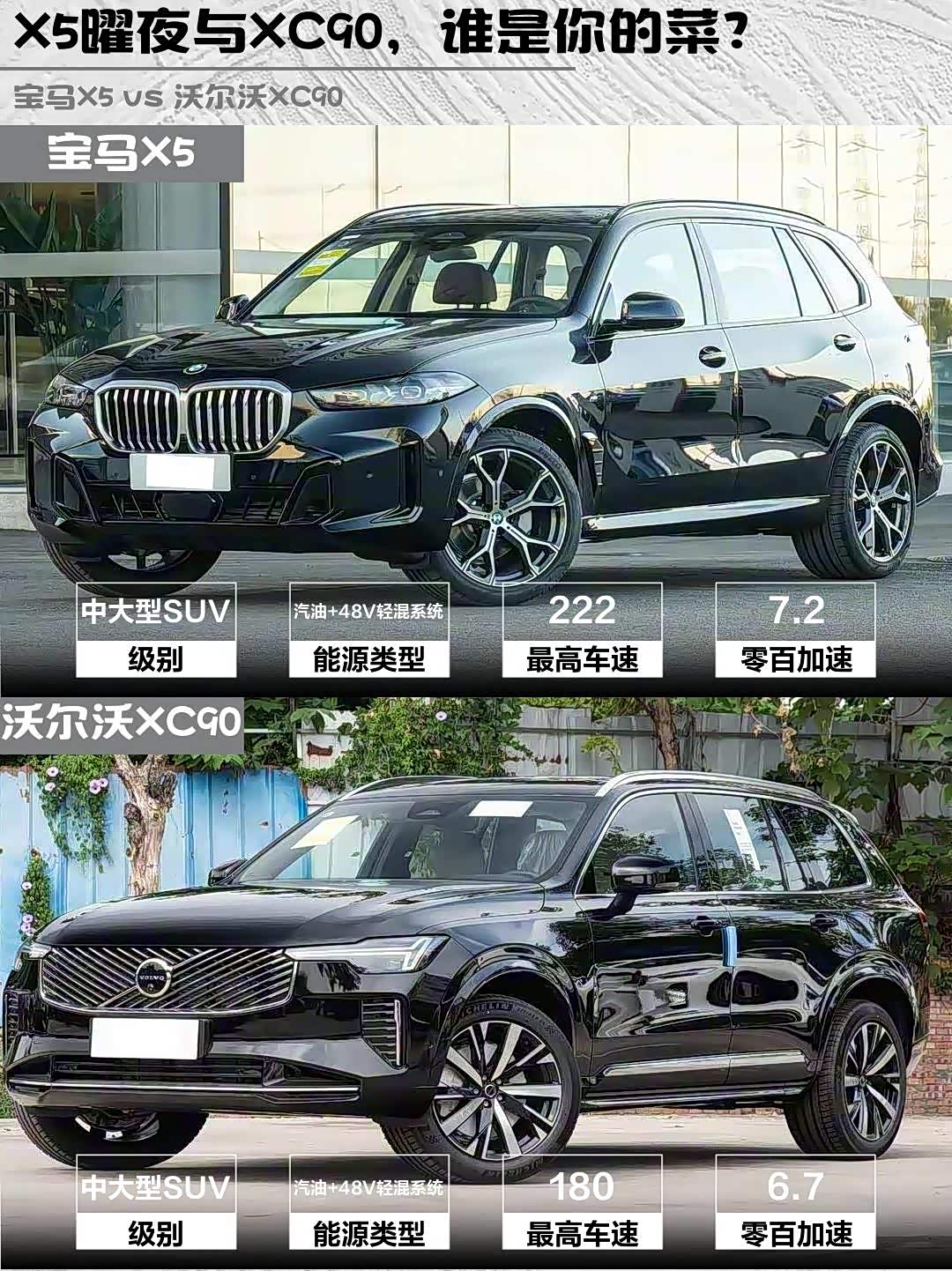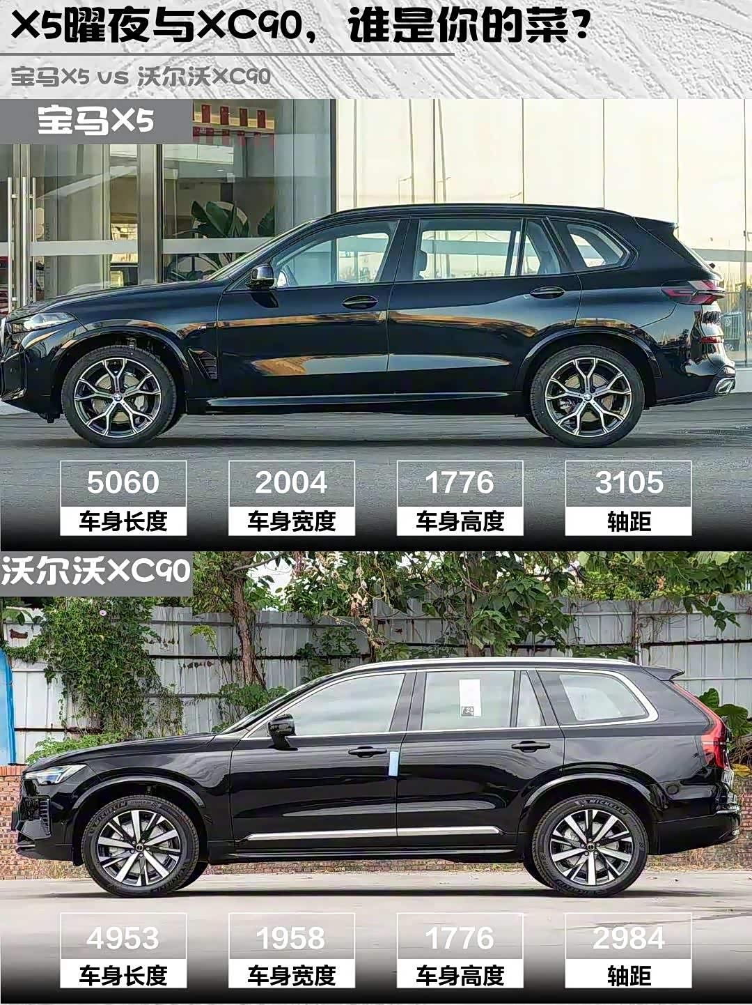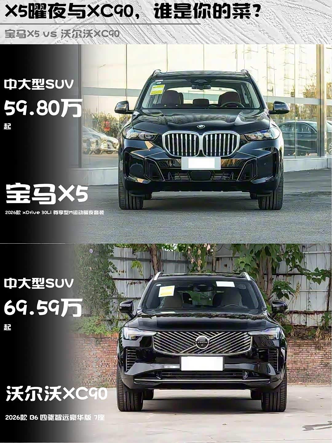 要操控面子选X5,曜夜套装开出去确实拉风;要全家出行选XC90,7座+环保内饰对老人小孩更友好。偷偷说句大实话:经常跑长途的选XC90,City Safety真的能防疲劳驾驶走神!