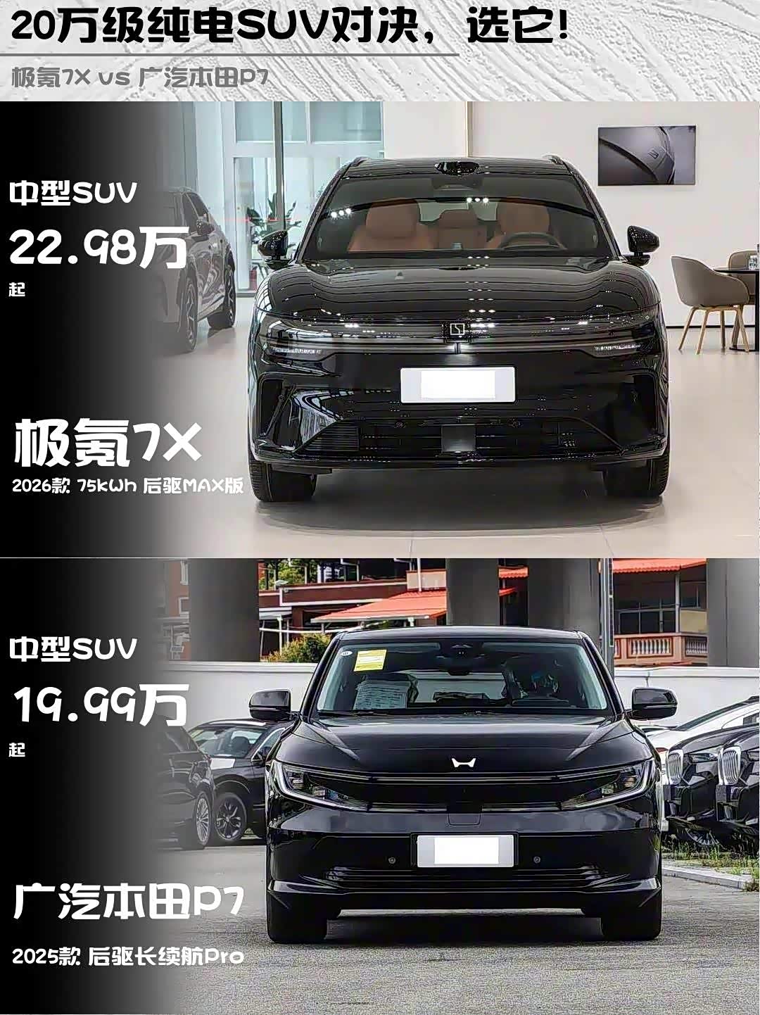 最近后台好多朋友问25万预算买纯电SUV,极氪7X和本田P7到底哪个香?作为深度试驾过两台车的过来人,这就把对比干货喂到嘴边👇