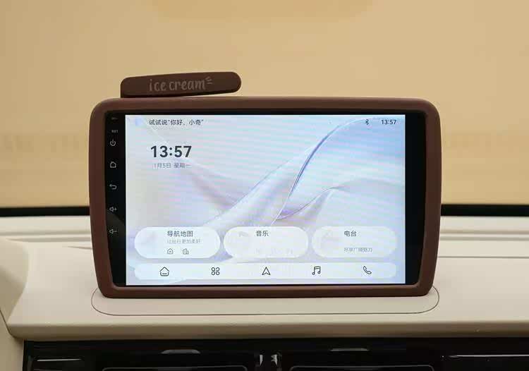 新款奇瑞QQ冰淇淋的内饰布局保持不变,前排留有多个开放式储物槽,而中控台中间部分改成了软性材质覆盖,并做了缝线处理,并增加了3个标准1/4螺纹接口,可以安装手机支架、挂钩等,增强了实用性。