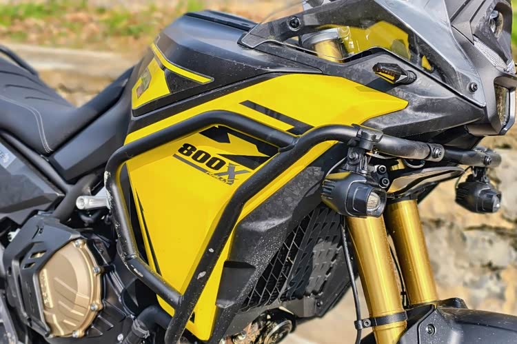 DS800X会搭载采用270度曲轴和双平衡轴设计的动力总成,它实际排量798cc,最大功率70KW,最大扭矩81N·m。另外,该车的离地间隙高达220mm,并配套有KYB前后减震、日信刹车套件、双通道ABS、TCS等前沿配置。因此烂路骑行能力会很强,且已经受了海外摩友的检验。