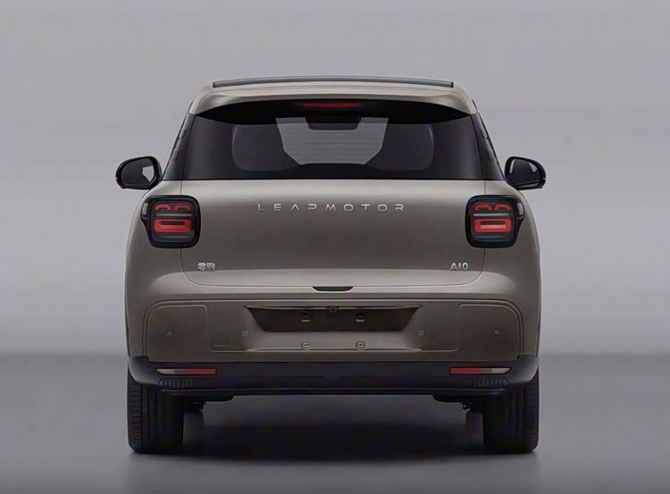 车身侧面线条流畅舒展,隐藏式B/C/D柱营造出悬浮式车顶效果,搭配半隐藏式电动门把手与门板集成式外后视镜,有效优化风阻表现,D柱位置的立体腰线进一步丰富视觉层次。车尾采用与前脸呼应的笑脸样式尾灯,搭配“LEAPMOTOR”英文标识,简洁大气。新车提供海苔绿、橡果棕等个性化车漆,可选装不同样式18英寸轮毂及翼子板装饰件,兼顾实用性与美观度。
