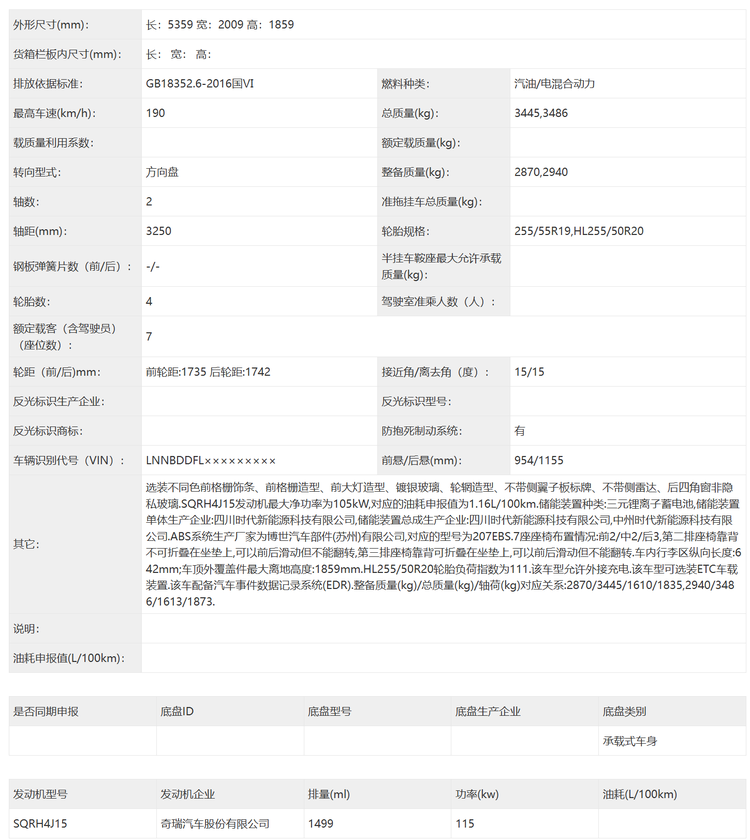 动力方面,新车搭载了1.5T增程系统,增程器来自奇瑞,型号为SQRH4J15,最大功率115kW,电动机的参数并没有公布,与之搭配的是三元锂电池组,CLTC工况综合续航超过1200km。