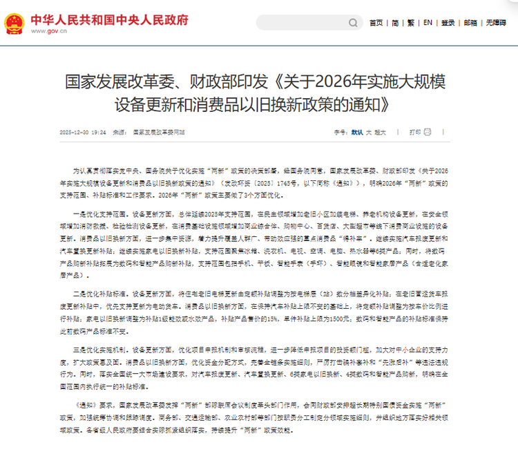 值得注意的是,12月30日,中国政府发布了2026年的“国补”政策,即明年新能源汽车购置税减半。这导致今年下半年,尤其是最近几天,许多人为了享受完整的购置税减免而购车。政府担心明年上半年或年初汽车销量会下滑,因此在30日出台了“国补”政策,一方面消化今年的购车冲动,另一方面宣布2026年继续支持汽车产业。