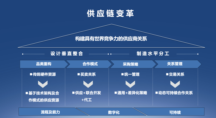 更为关键的是,我们的采购团队首次去突破了物理零部件的边界,我们之前是把交付件主要理解为物理的零部件,我们将软件、芯片和代工也纳入到了整个品类的管理体系,我们有了更多的、更深的产业协同的机会和资源。