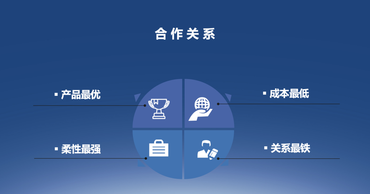 我们一直秉承着和供应商伙伴来建立透明、互信、协同的合作关系,围绕产品最优、成本最低、柔性最强、关系最铁,四最的方式来做新的关系。