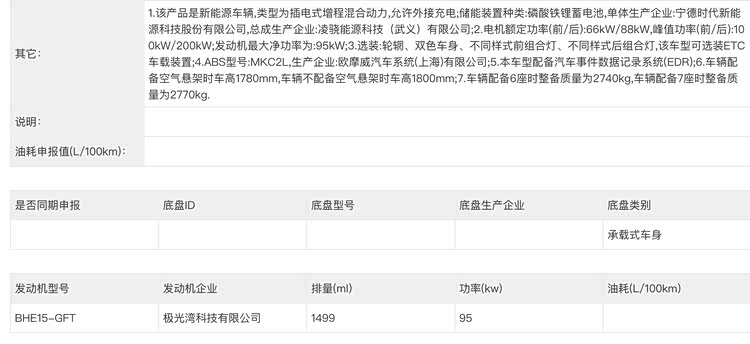 增程版采用800V平台,30%-80%充电只需15分钟。采用来自吉利的1.5T增程器,代号BHE15-GFT,最大功率95kW,前后电机总功率408Ps。并不是特别强调动力的车型,目测百公里加速在6-7秒级别。