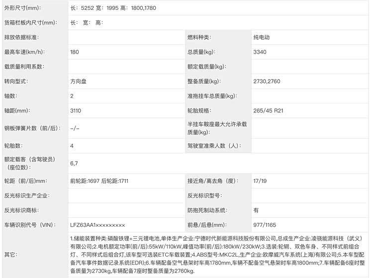 纯电版采用1000V平台,电池为宁德时代混合电芯,容量达到115kWh。高配车型还有带预瞄主动控制的双腔闭式空悬,带有 CDC阻尼可调,前双叉臂、后五连杆悬架,搭配LMC2.0底盘控制系统。