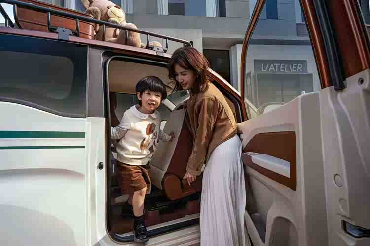 车顶的行李架承重30kg,对于微型车来说内部空间都不太充裕,行李架的存在就可以让大件行李有地儿放了,要是顶上几个皮箱子,那感觉就太对路了。除了车顶之外,车尾还配备了支架,承重2kg,展车上还配备了藤编小书包,容量为15L,这个搭配的感觉也很对,即使不放东西当做一个装饰都很好看。