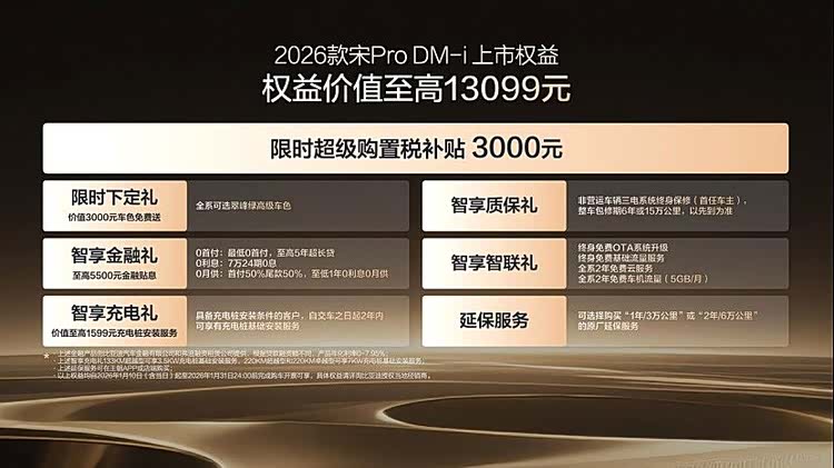 宋Pro已赢得超过百万家庭的信赖。此次2026款宋Pro DM-i以限时9.98-12.78万元的诚意价格,为消费者提供了更具价值的选择。它不仅是对产品线的有力补充,更是基于用户真实反馈的诚意升级。以更长的纯电续航、更智能便捷的科技配置、更体贴入微的舒适享受和更周全可靠的安全防护,生动诠释了一款优秀家用SUV应有的价值,陪伴更多家庭悦享每一段美好旅程。