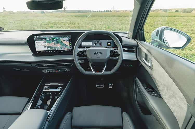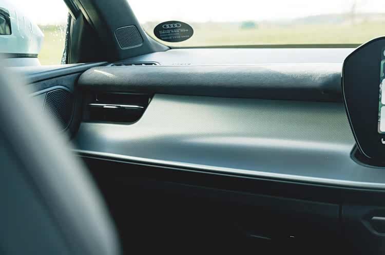 副驾驶侧没有娱乐屏,倒也符合该级别车型的预期,向驾驶侧偏转的中控台面,增强了运动感,随处可见的翻毛皮装饰也与之形成呼应,扶手箱前端区域则是双杯架,盖板储物格和简单的物理旋钮基本是最新家的风格,只是摆放的方式略有差异,最为个性的当属平底三辐方向盘后方的换挡机构,这倒是新一代奥迪车型目前来看的唯一一款,显示了特殊的身份。