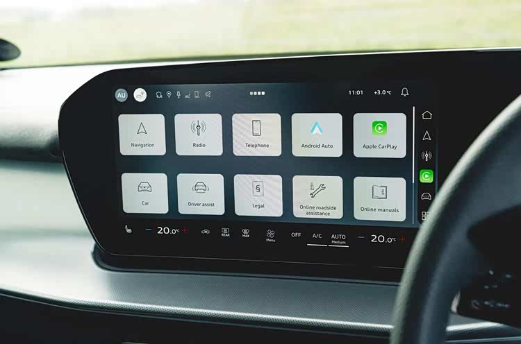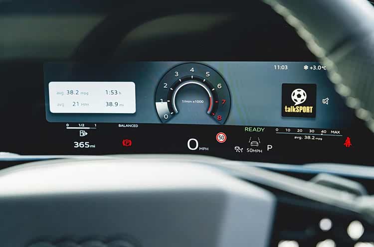 车尾部分贯穿式的尾灯,当然是一大亮点,左右两侧双层分叉,上方是红色灯组,下方是不点亮时呈灰白色的转向灯,也有着不错的辨识度和科技感,车顶扰流板不会缺席,尾箱线条依旧明显突出,后保险杠部分还有这个贯穿式的黑色装饰,让整车的风格形成统一。内饰部分当然也是最新的家族风格,双联大屏向驾驶的偏转略带弧面,只是两个屏幕的尺寸差距有点大,液晶仪表盘有些过小,留出了巨大的边框,观感并不算好,不知国内版本会有着怎样的提升。