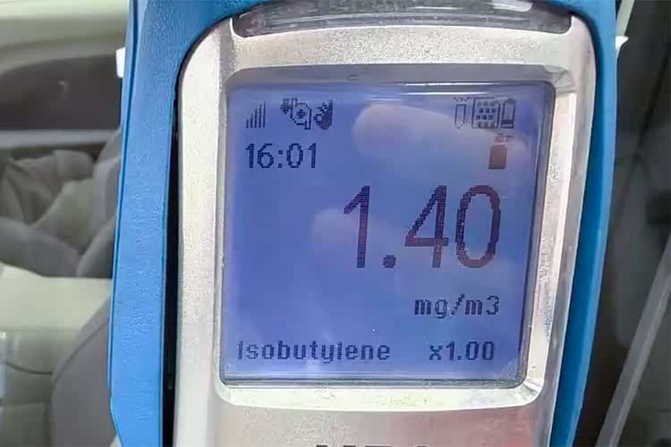 车内除了甲醛之外,TVOC也是重要的有毒有害气体、它是造成车内味道浓重的主要原因之一。TVOC是指空间内所有有机气态物质的总称,例如苯类、烷类、芳烃类、烯类……这些有机物都会对人体健康造成伤害。 测试方法:将测试车辆在自然环境中,打开车门车窗进行完全通风;随后,将一根硅胶软管固定在司机头枕附近,模拟人呼吸位置;关闭车门车窗,将车辆停在恒温23±1℃的环境中密封静置16小时;使用盟莆安MP181型TVOC检测仪,从软管泵吸车内空气,直至数值稳定后,得出最终结果。