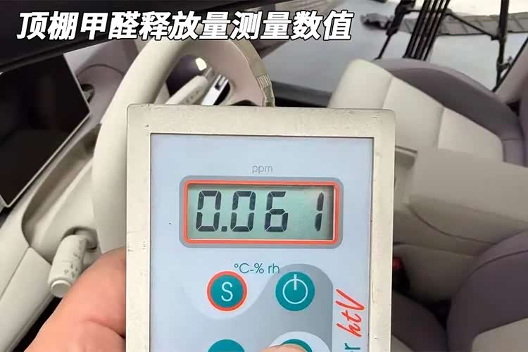 座椅的甲醛释放量测量数值为0.030毫克每立方米,顶棚中的甲醛释放量测量数值为0.061毫克每立方米。