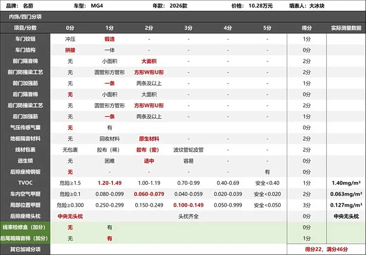 这辆名爵MG4值不值得买呢?如果你需要一辆高性价比的小车,可以去考虑,在同价位当中,这款车的尺寸更大,续航更长,还有更安全的半固态电池可选。如果更愿意为安全买单,那目前也只有它!(本文及视频中的测量数据结论观点仅对此辆车负责,测量数据对公示的实验方法负责。)