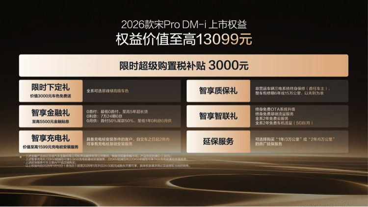 宋Pro已赢得超过百万家庭的信赖。此次2026款宋Pro DM-i以限时9.98-12.78万元的诚意价格,为消费者提供了更具价值的选择。它不仅是对产品线的有力补充,更是基于用户真实反馈的诚意升级。以更长的纯电续航、更智能便捷的科技配置、更体贴入微的舒适享受和更周全可靠的安全防护,生动诠释了一款优秀家用SUV应有的价值,陪伴更多家庭悦享每一段美好旅程。